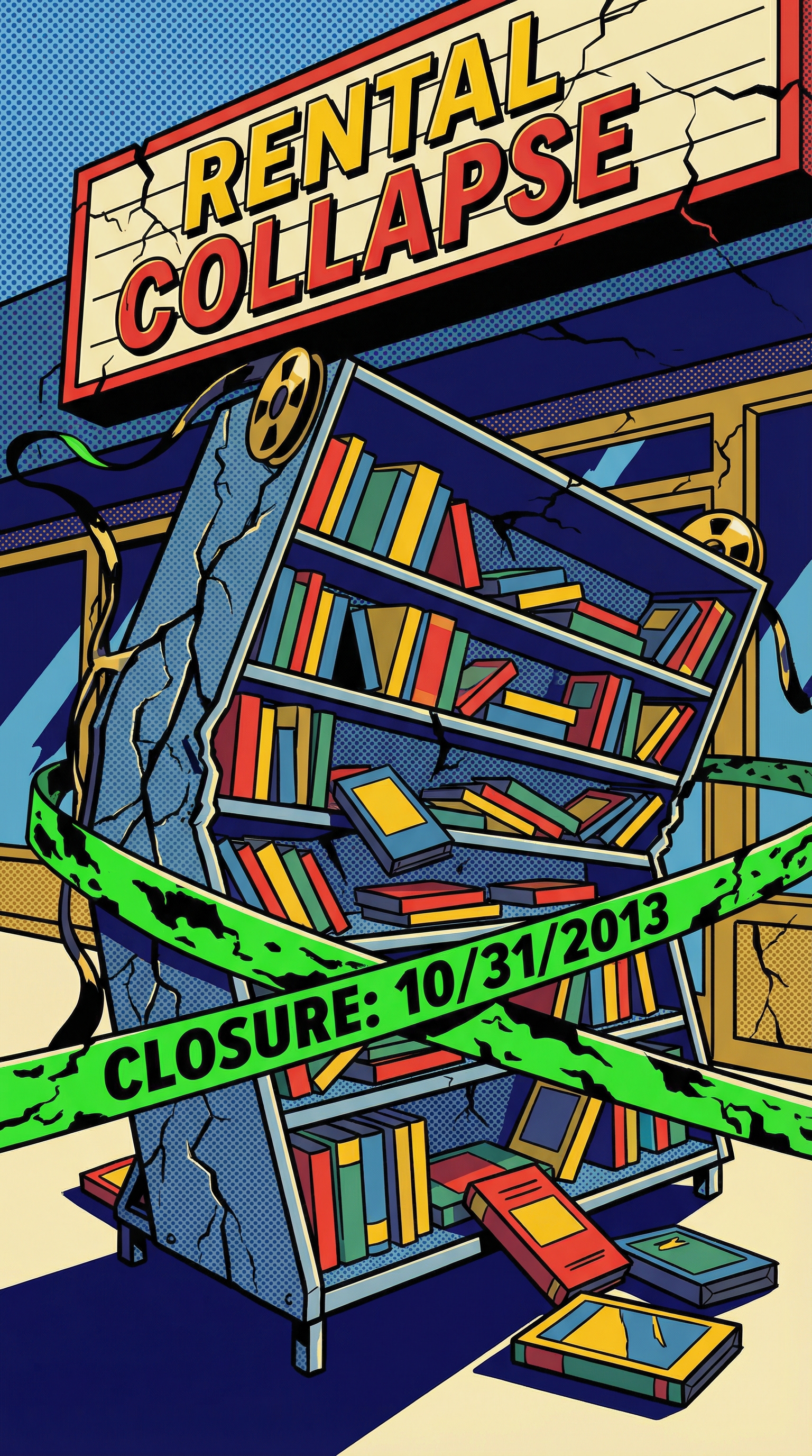 Rental Collapse manifests as impossibly heavy VHS shelving units that bend and buckle under their own weight, the metal framework groaning with stress fractures that mirror the exact failure points of actual Blockbuster stores in their final days. The entity emits the distinctive sound of security gates being pulled down for the last time, accompanied by the irregular flicker of dying fluorescent tubes. It radiates the haunting smell of industrial carpet cleaner mixed with the chemical off-gassing of thousands of plastic VHS cases left to decompose in abandoned retail spaces - the precise olfactory signature of infrastructure failure.