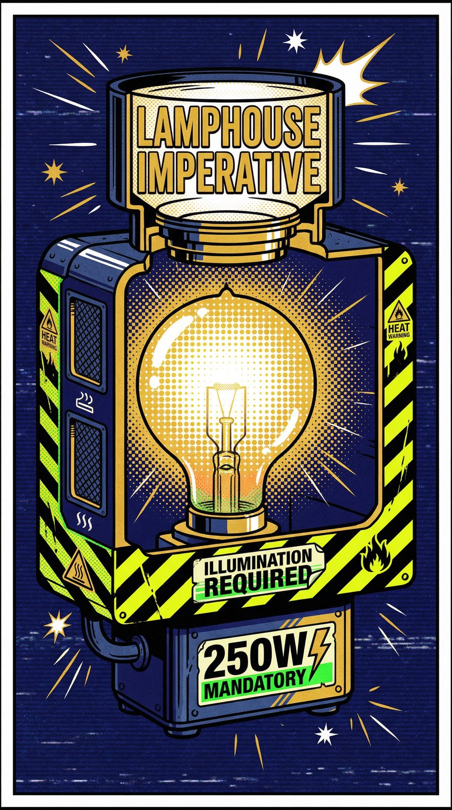 The Lamphouse Imperative emerged when a player's perfect performance was recorded but never witnessed because the projection bulb burned out during playback, leaving the tape spinning in darkness while the audience sat in an unlit theater. The Chaintrix learned that recording without light is just expensive darkness, making illumination the ultimate authority that supersedes all magnetic testimony - establishing that your performance only counts if the lamphouse agrees to show it.