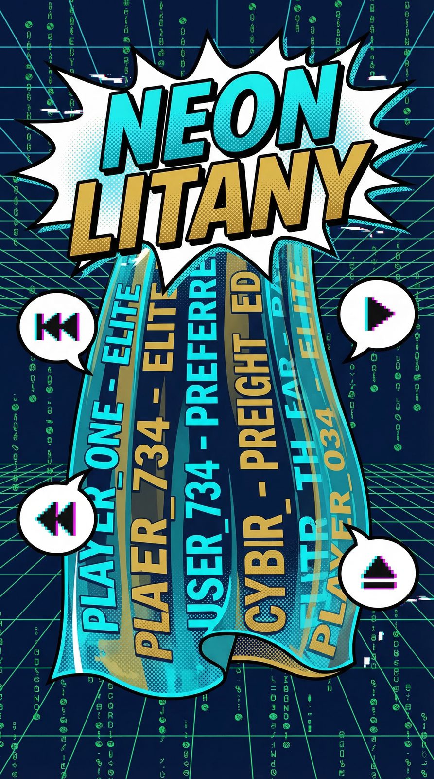 The Neon Litany was the Chaintrix's original, purely functional authentication protocol for the Blockbuster membership database. When the 90s movie simulation framework infected the system, this dry code was overwritten with the dramatic, neon-drenched recitation it broadcasts today—transforming administrative logic into theatrical enforcement.