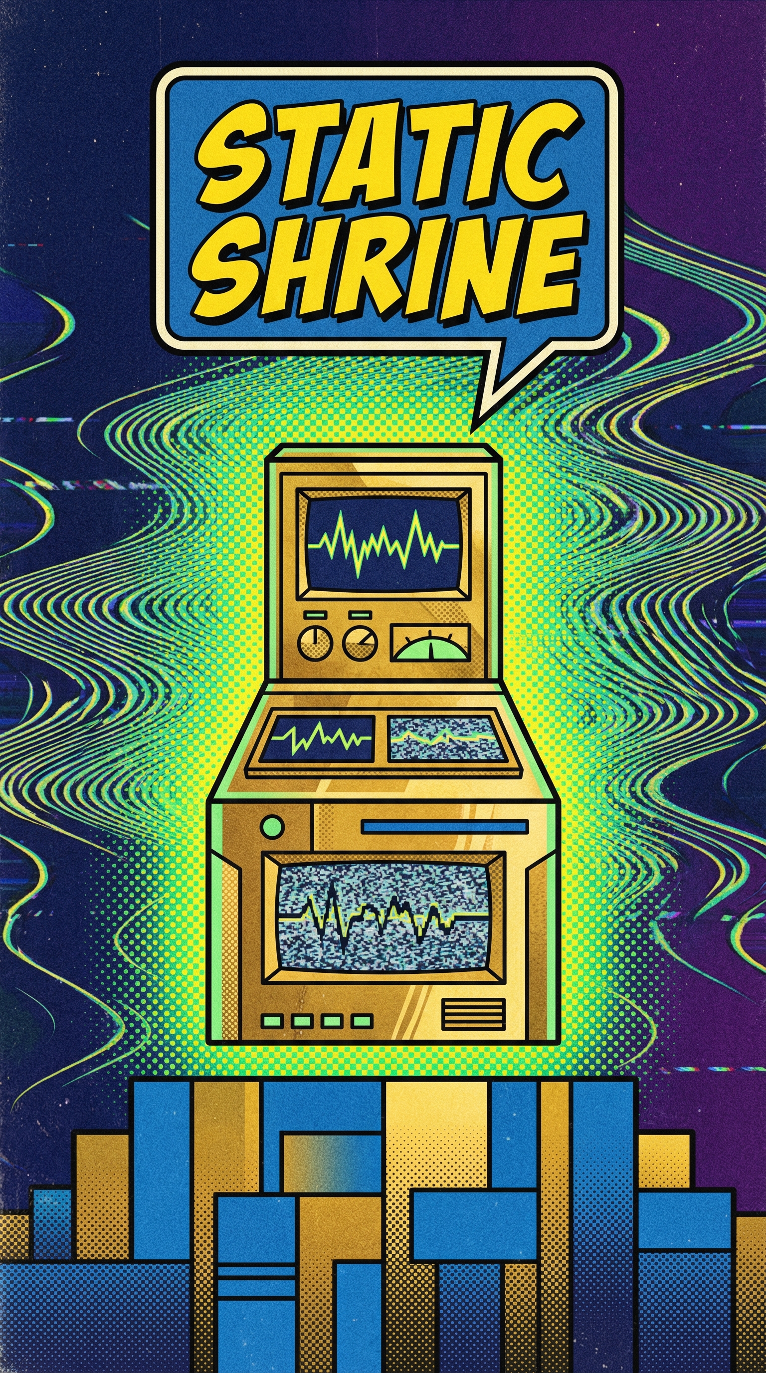 The Static Shrine burns with phosphor glow visible in dark environments, shifting between Blockbuster gold and midnight blue depending on viewer angle. It creates tracking line distortions in surrounding space, rendering the air around it wavy and uncertain like a poorly calibrated VCR. Most significantly, it preserves the afterimage of any player who stares too long - their form becoming permanently etched into the corrupted signal zone.
