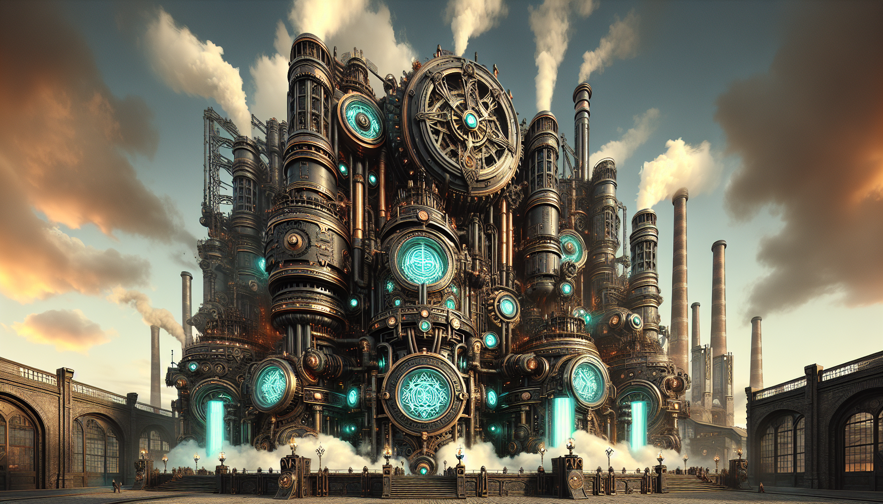 The Runic Pistonforge is a massive, steam-powered engine with intricate runes etched into its iron pistons. It generates immense mechanical force by converting magical energy from the runes into kinetic power. The device is highly durable, capable of withstanding extreme pressures, and emits a faint teal glow from its runes when active.