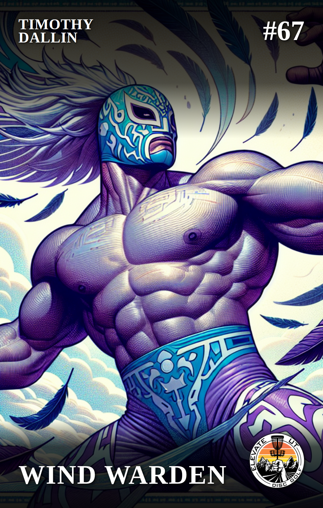Wind Warden was once a humble park ranger who spent his days watching over the skies and protecting the natural beauty of the land. One fateful day, while attempting to rescue a stranded bird, he discovered his innate ability to control the wind. Inspired by the grace and power of the bird's flight, he adopted the persona of Wind Warden, a luchador who uses his wind-manipulating abilities to perform gravity-defying throws and acrobatic maneuvers on the disc golf course.